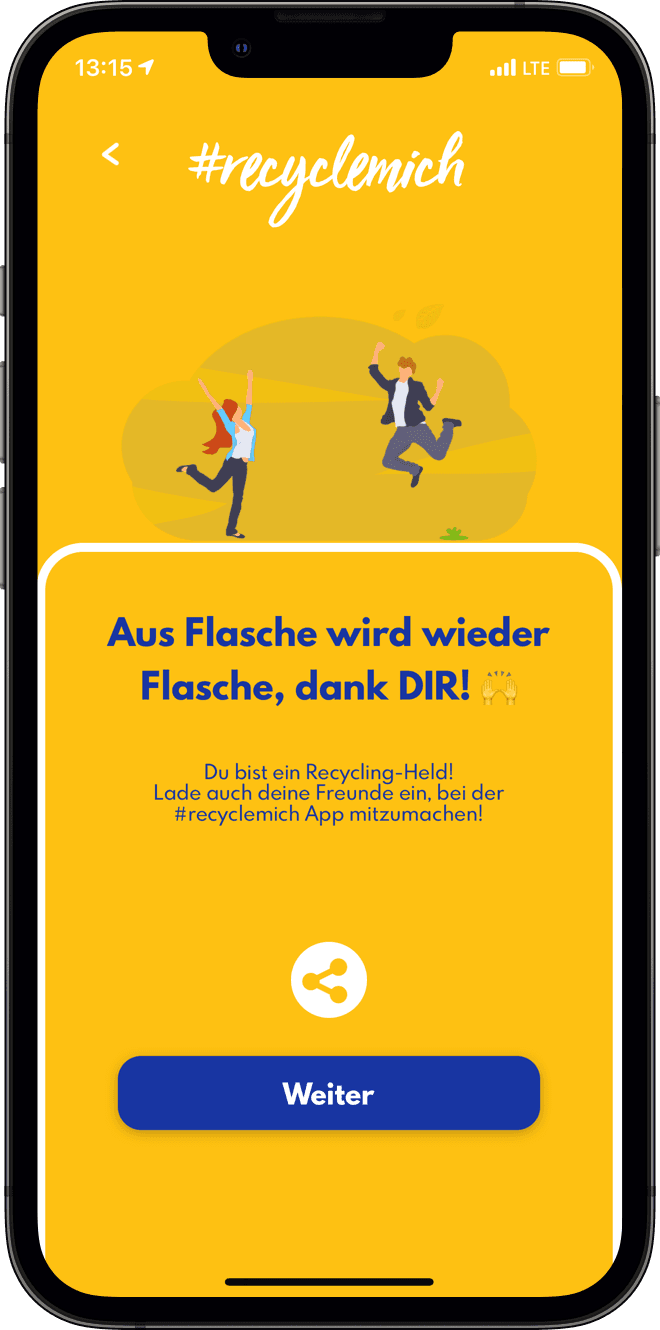 Users of the RecycleMich app are motivated to dispose of plastic bottles and aluminum cans correctly. In a playful way, they make an important contribution to environmental protection and can also win prizes in competitions.